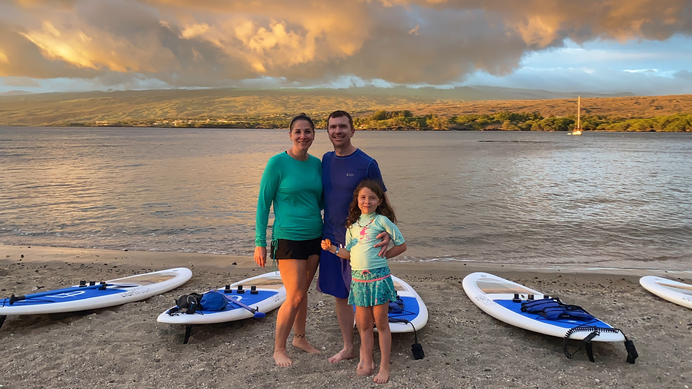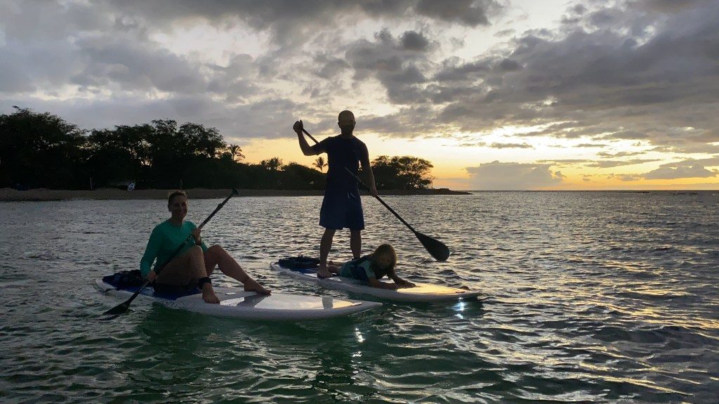 We went back to Puako Bay for an evening adventure with LightSUP Hawaii. We had reservations for the Signature Sunset Tour, which combines the views of snorkeling with the experience of paddle boarding…in the dark! 😱 I’m not going to lie peeps…I had some pretty intense anxiety about this activity. I was terrified to fall into the water at night, mostly because that seems to be when sharks are likely hunting, but also because I didn’t want to step on any of the sea urchins (mentioned in my earlier post). But seriously, it was mostly the shark thing. 🦈