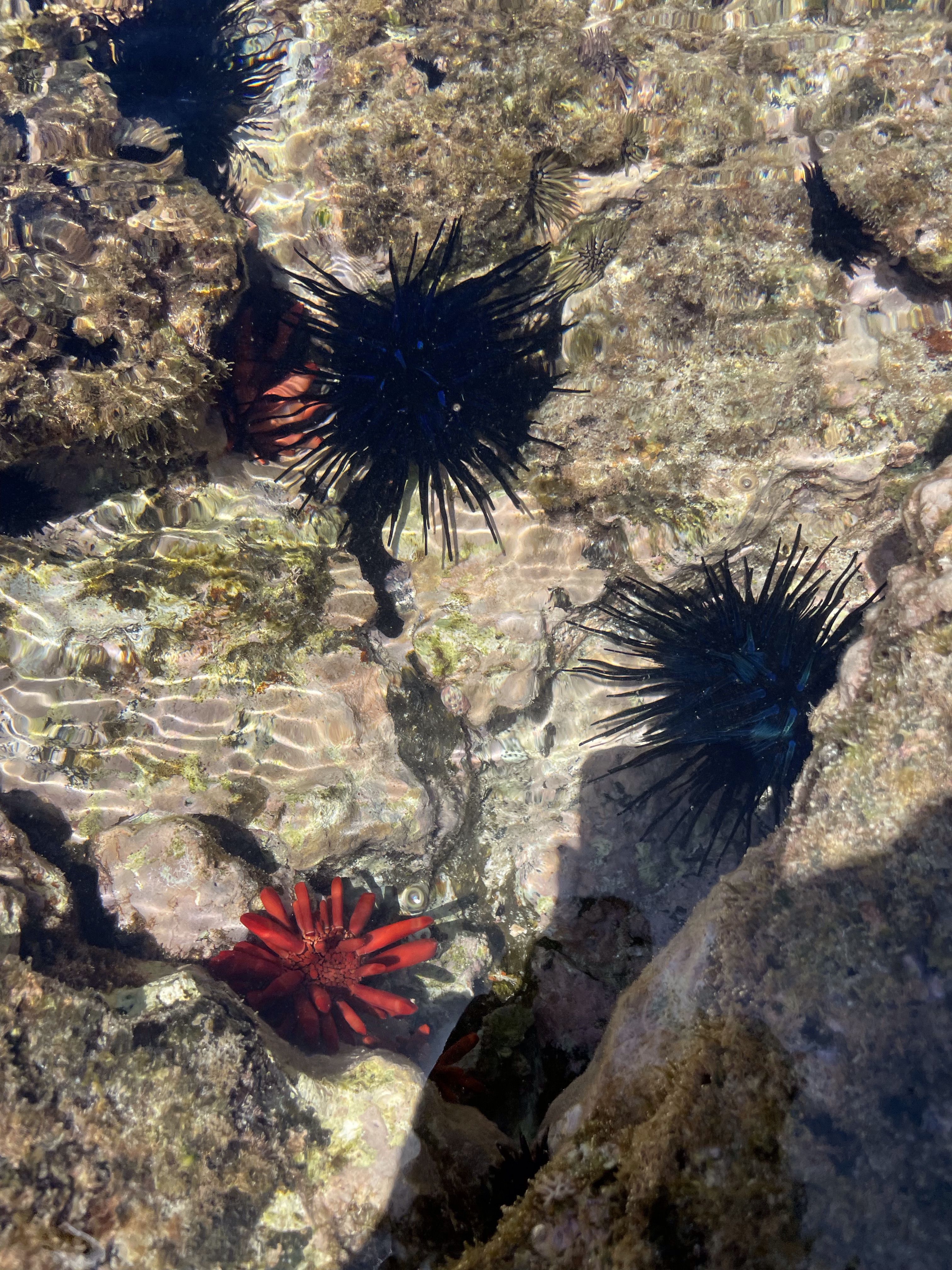 One of the very first things we did on the Big Island, was visit Puako Bay during low tide. There isn’t much sand there, but the natural formations in the lava rock create amazing tide pools! During low tide, small pools dot the entire coastline and it is a great place to explore and observe small sea creatures throughout an extensive reef. We saw a ton of sea urchins and they were the biggest sea urchins I had ever seen! The creature in the top right photo is a sea cucumber. I just learned that sea cucumbers excrete a toxic venom and can cause permanent blindness in humans if it gets in your eyes! Great…adding more to the list of things I’m terrified of in the ocean. 🤦🏼‍♀️