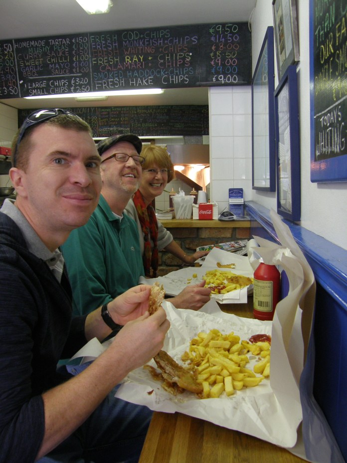 Upon our arrival in Dingle we were on the hunt for the best fish and chips and the best seafood chowder in town. Winnie’s friends were recently in Ireland and they assured us that Reel Dingle Fish was the best fish and chips in town and the Half Door Restaurant had the best seafood chowder in town. Rob, Tom and Winnie all enjoyed their fish and chips, but I took a pass on this meal because I was looking forward to the seafood chowder. The owner of Reel Dingle Fish gave us a wonderful tip about a walking trail along the peninsula with some breathtaking views. We thanked him for the tip and then we headed to the Half Door Restaurant so I could try the best chowder in town. Delish!