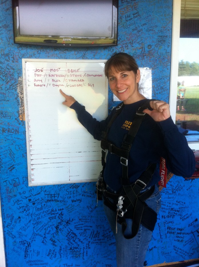 Rob was on board to try this with me, so in September of 2011 we went for it. We arrived at the sky diving location and my first thought was that things didn’t seem nearly as organized as I thought they would be. But I am an organization freak, so it is always hard to tell if my standards are just skewed. There were a lot of people in line ahead of us, so we were going to be waiting there for quite some time. Excessive waiting is always really good for calming the nerves! (Note sarcasm). Several hours later, it was almost our turn. Our names were finally on the board.