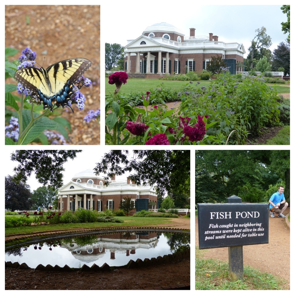 No pictures were allowed to be taken inside the home, but if you would like to get a glimpse of the interior rooms, click here. The view of Monticello from the West Lawn (rear of the house) is more famous than the view of the front of the home. The West Lawn is vibrant with beautiful gardens and butterflies galore. There is also a fish pond that was more function, than decoration. Fish were caught in nearby bodies of water and then “stored” in the fish pond until needed. A fabulous idea for an era before refrigerators!