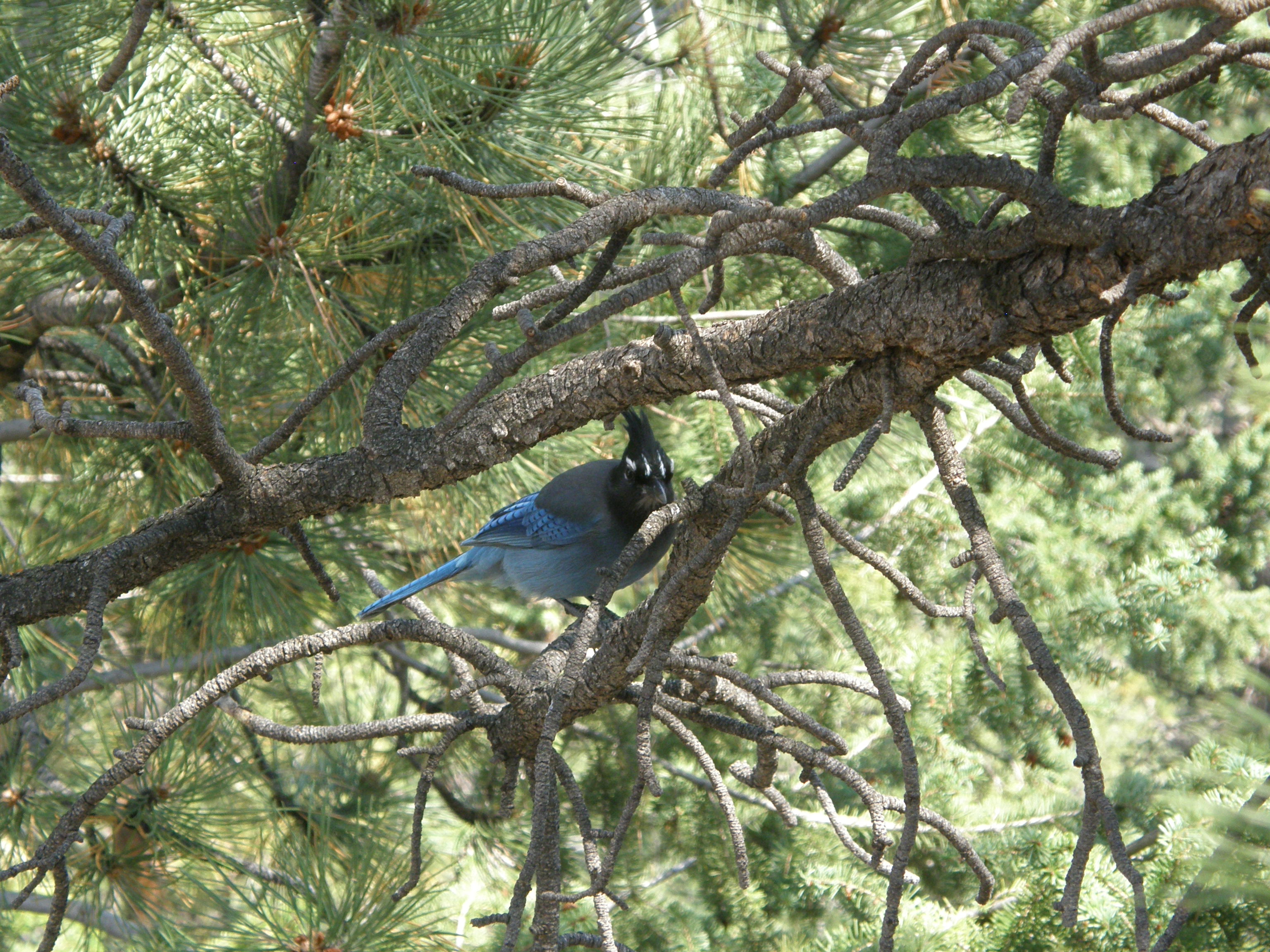 About 2 hrs. later we got to Estes Park, which is a beautiful town right outside Rocky Mountain National Park.  We stopped at a scenic overlook and we became so preoccupied with the wildlife there that we didn’t get a picture of the Rocky Mountains in the background! (That last part isn’t exactly true.  The real reason we didn’t get a photo of the mountains is because of some other tourists that wouldn’t get out of our shot and I got tired of waiting for them to leave.)  The first thing we saw as soon as we pulled into the overlook was this beautiful woodpecker.