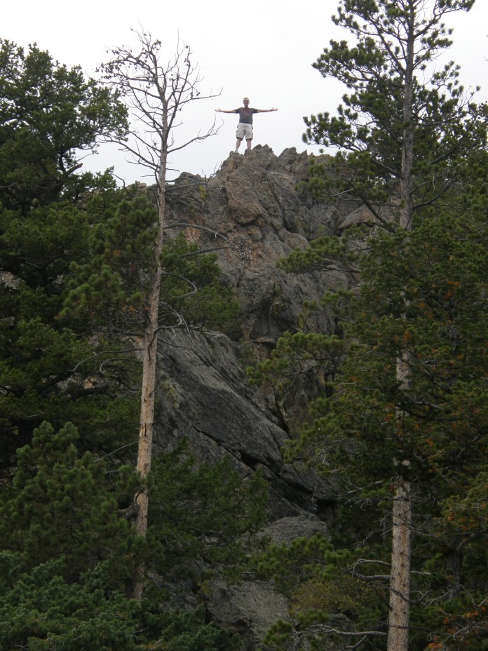 We entered the park through the south entrance and paid the $20 fee (worth it).  Rob didn’t get to enjoy the scenery quite as much as I did since he had to concentrate on the driving.  The roads are extremely windy and you can’t exactly stop in the middle of the road to take in the view.  But we definitely made use of all the available overlook areas so that we could park and both enjoy the view.  Our first stop was called Many Parks Curve at 9,640 feet.  Of course Rob had to do a bit of climbing of his own, so I guess his elevation was slightly higher than that!