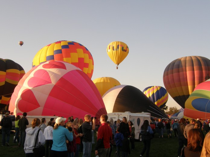 On Saturday morning we had to wake up at 4:30 a.m. because we wanted to head south to Colorado Springs for the Colorado Balloon Classic.  This annual hot air balloon show has become the largest and longest running hot air balloon festival in Colorado.  It is held every year in Colorado Springs over Labor Day weekend and since the timing of our visit was perfect, I didn’t want to miss it.  The balloons start to take flight right around sunrise, but it was definitely worth waking up at that wretched hour because it was one of the coolest things I have ever seen.  We arrived at Memorial Park just as the very first balloon was being inflated, but most of the other balloons weren’t even set up yet.  This gave us time to find a breakfast vendor and some much-needed coffee.  By the time we were finished with our breakfast burritos, the field of balloons were starting to go up.