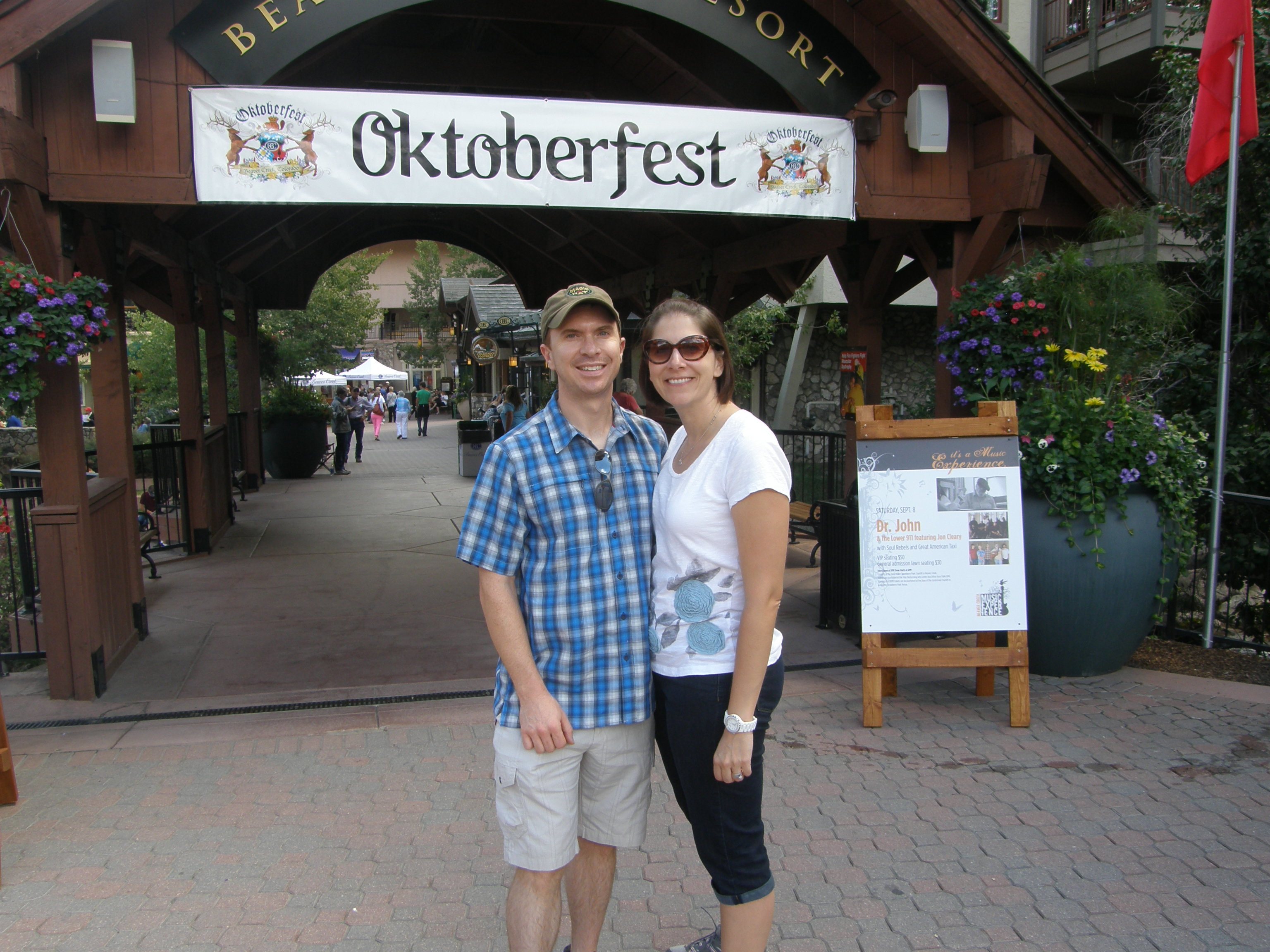 On Sunday morning we woke up feeling refreshed after our long day in Colorado Springs.  We all went out for a nice breakfast and later that morning we shuttled to the neighboring ski town for Oktoberfest.  Beaver Creek Resort has a Bavarian feel to it so it was a great location to host such a festival.  I am assuming they do it every year, but I am not sure.  Either way, Rob and I were both looking forward to some good German Bier and Bratwurst.  Rob was especially looking forward to the Bratwurst part since he had ordered Bratwurst for lunch in Colorado Springs the day before and they literally served him a hot dog!  He was not pleased…but hopefully the delicious Bratwurst we had at Oktoberfest made him forget all about the hot dog incident.  We had a good time enjoying the German music, food and beer, but we couldn’t stay too long.  We had to get back on the road towards Denver for plans we made with John and Leslie.