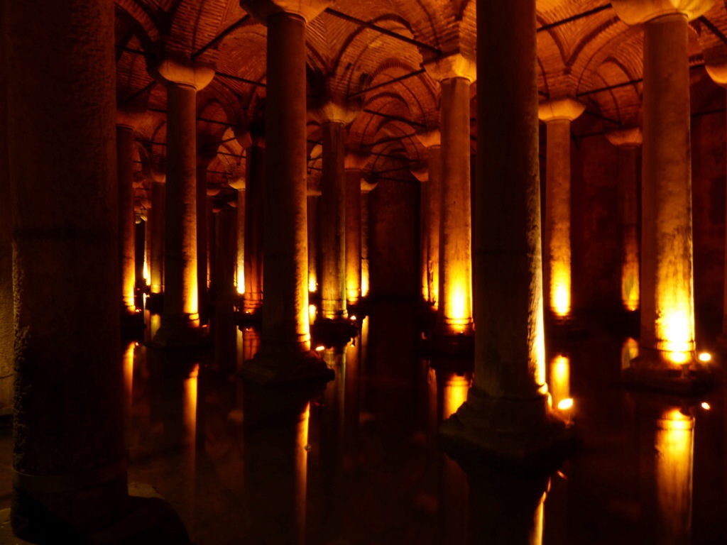 In one corner of the cistern there are two columns with bases depicting the head of Medusa. One of the heads is upside-down and the other is oriented sideways. The origin of the two heads is unknown and it is a complete mystery why they are oriented in such a peculiar manner. Very Barely spooky.
